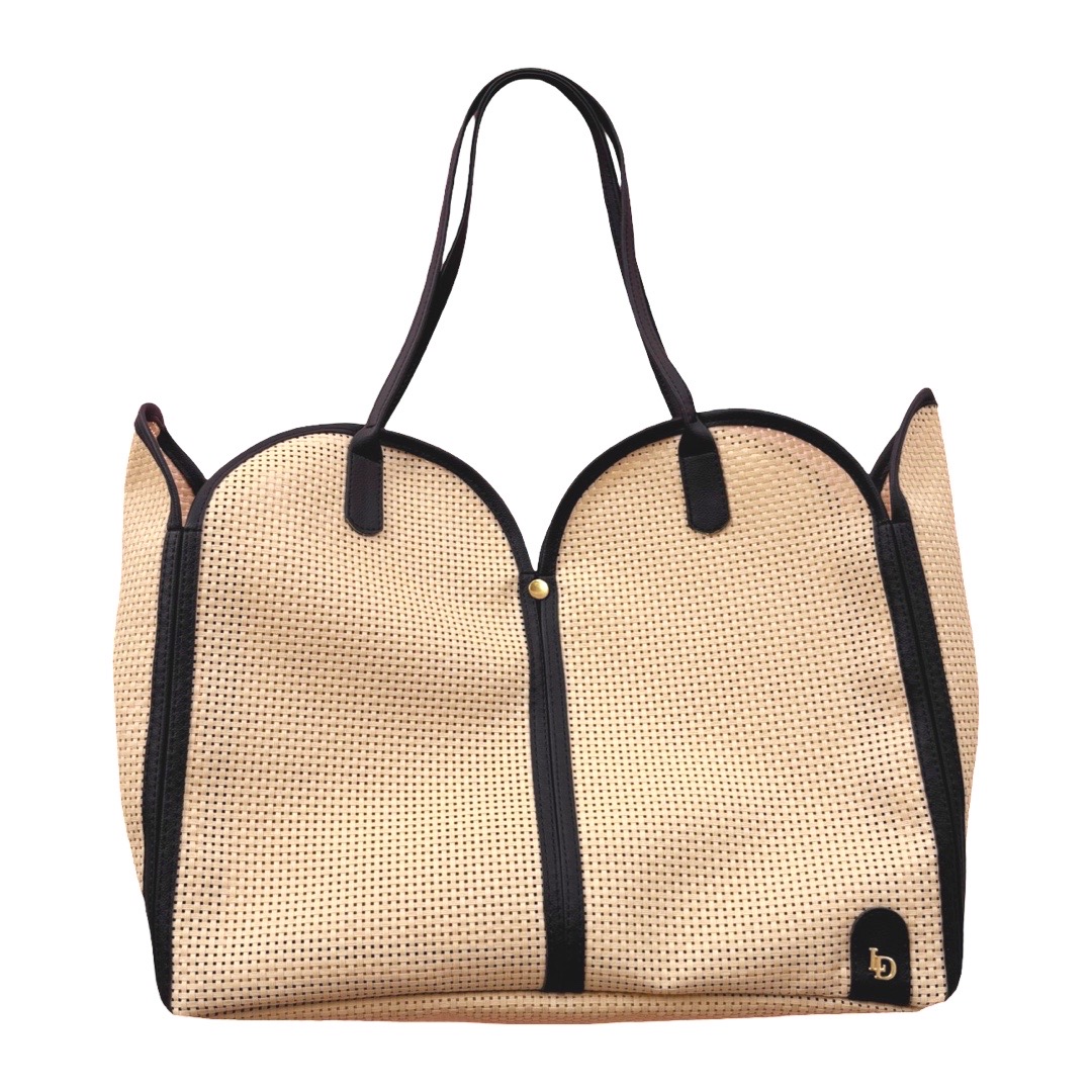BOLSA CONFECCIONADA EM PALHA SINTÉTICA VAZADA (FÁCIL LIMPEZA), RESISTENTE, POSSUI A COR BASE BEGE SÓ MUDANDO A COR DO DETALHE DOS FRISOS E ALÇAS, POSSUI ALÇAS DE OMBRO, FECHA COM BOTÃO DE PRESSÃO, IDEAL PARA PRAIAS, PISCINAS, CLUBES, ETC